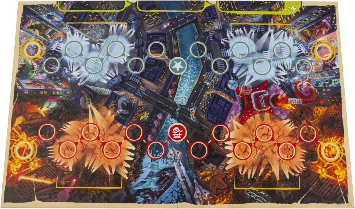 Епічний динамічний файтинг на столі, розрахований на двох гравців. У цій настільній грі учасники перетворюються на гігантських, сильних та вкрай небезпечних розлючених істот кайдзю. Вони б'ються за владу в столиці Японії - Токіо, кидають кубики, отримують енергію та купують карти поліпшення з крутими спорядженнями.