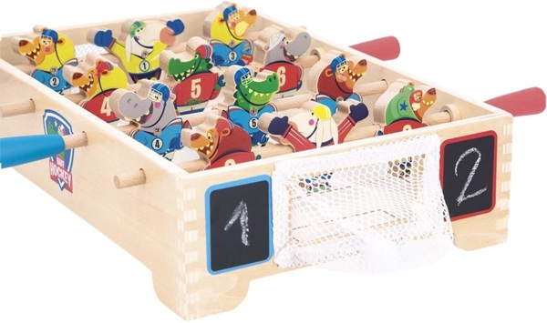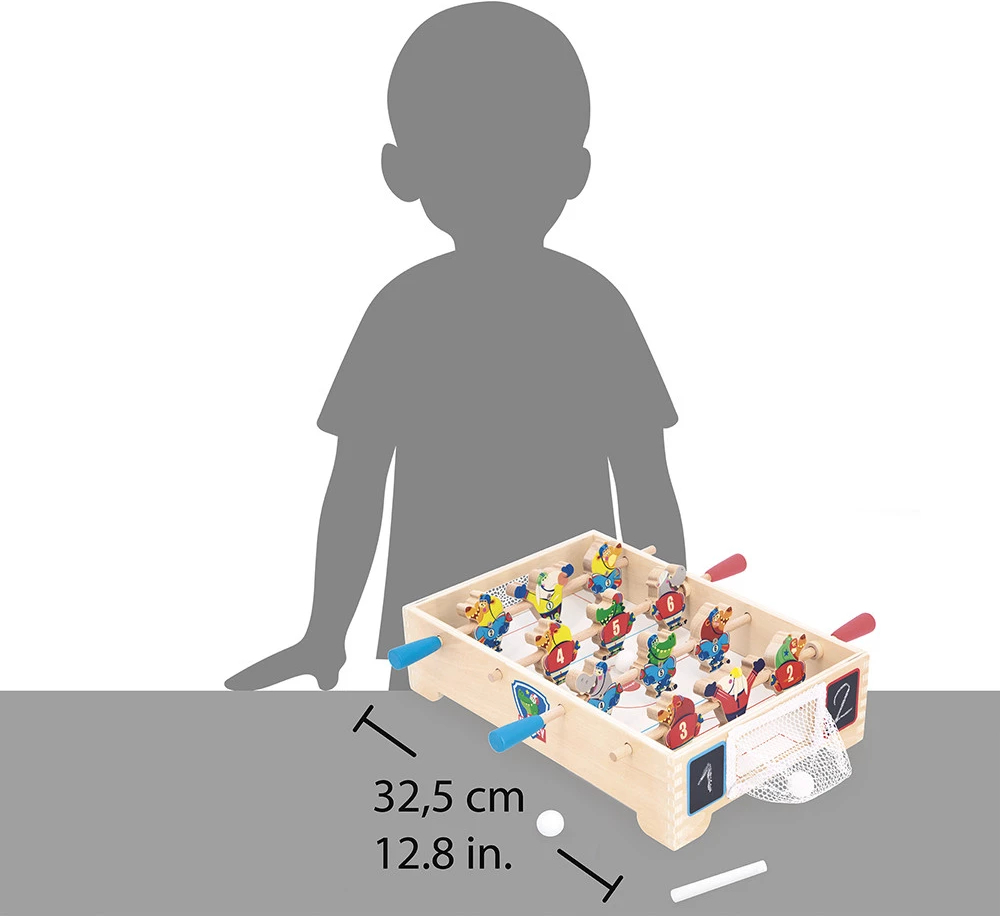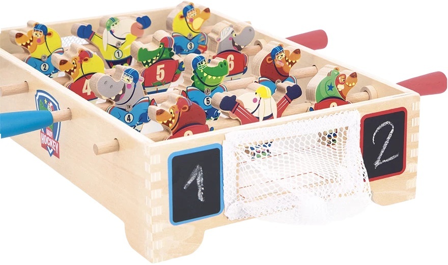 Ви колись пробували грати в хокей? Підходить для дітей від 3 років, гра у маленький хокей відбувається як класична гра у настільний футбол: за допомогою своїх 2 ручок спробуйте забити м'яч у ворота суперника.