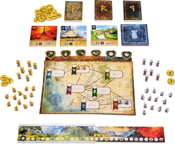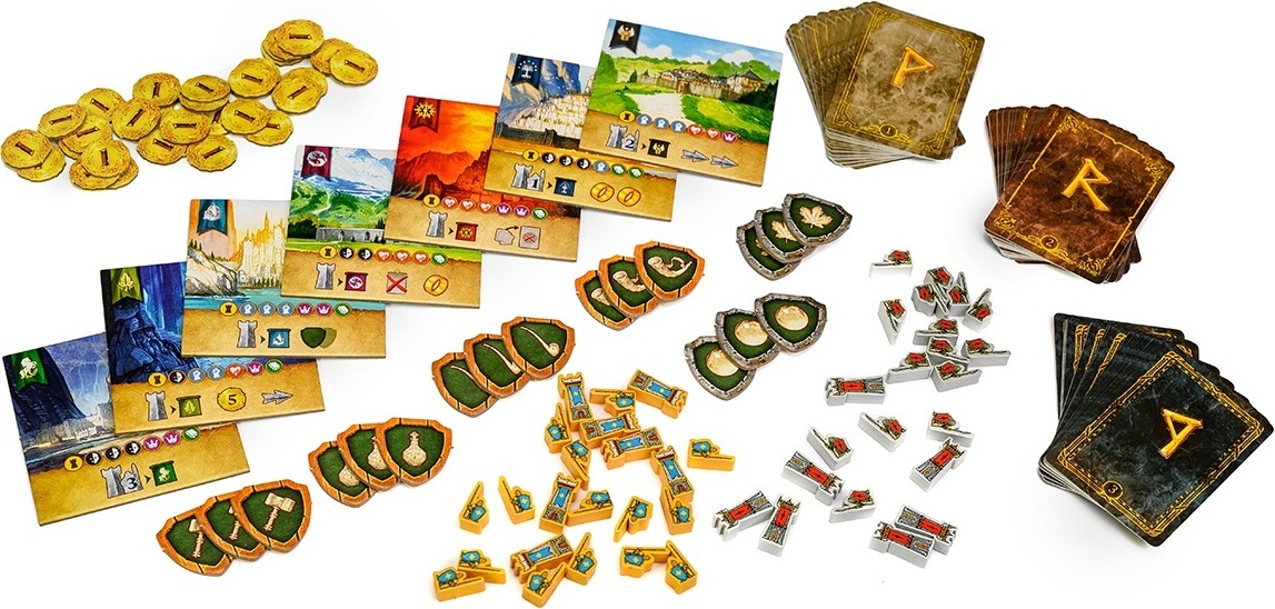 | Комплектація | Ігрове поле, Документація, Жетон – 18 шт., Карта – 69 шт., Монета – 30 шт., Пам'ятка, Тайл - 7 шт., Трек, Фішка – 44 шт. |