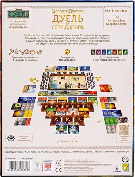 Карткова фентезі гра для 2 гравців, що занурить вас у протистояння Братства Персня та Темного володаря Мордору.