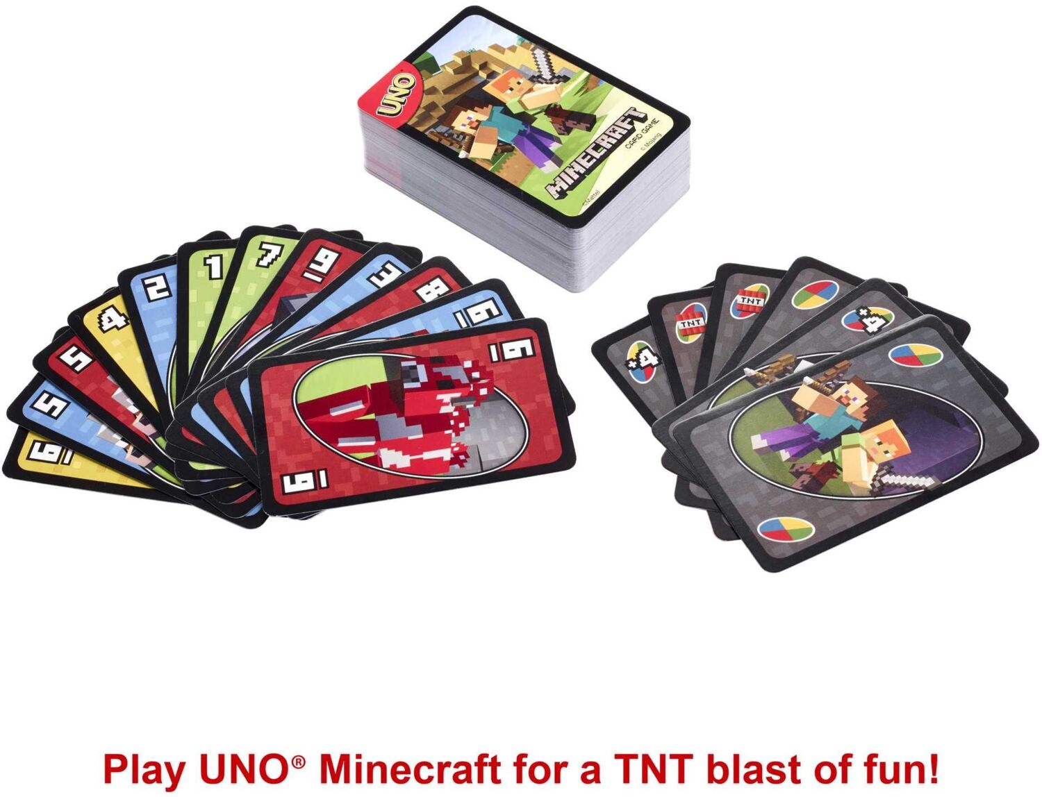 Ігровий процес нагадує класичну карткову гру UNO - відповідні кольори та цифри, а в цьому виданні ще й персонажі Minecraft! Коли у гравця залишається одна карта, він все одно повинен кричати "UNO"!