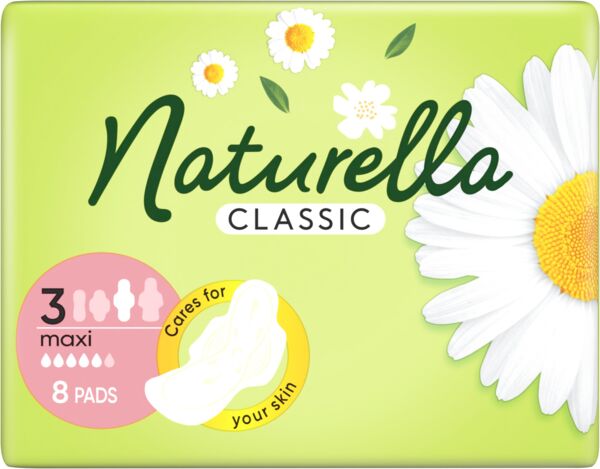 Краса — це не тільки гарний зовнішній вигляд, це також гарне самопочуття.Критичні дні не повинні ставати на заваді вашій зовнішній красі й гарному настрою.Ваша шкіра схожа на квітку під дощем: вона така ж вразлива та заслуговує на додатковий ніжний захист і турботу під час менструації.Завдяки більшій довжині (у порівнянні з Naturella Classic Normal) гігієнічні прокладки Naturella Classic Maxi Camomile із крильцями, які допомагають утримувати прокладку на місці, забезпечують м'який додатковий захист для найделікатнішої шкіри протягом дня під час рясних критичних днів.Це єдині жіночі гігієнічні вироби, які містять Dermacrem — унікальний сухий лосьйон для захисту шкіри, який згідно з результатами клінічних випробувань допомагає запобігти подразненню шкіри.Ці прокладки Naturella Classic Maxi з ароматом ромашки пропонують виняткову систему вбирання вологи та мають квітковий дизайн «сила квітів». Окрім того, вони мають абсорбуючі волокна, які розподіляють і вбирають вологу. Завдяки цьому ви відчуватимете сухість і комфорт.Прокладки Naturella надають додатковий захист під час критичних днів, з ніжністю та турботою, які так потрібні найделікатнішій шкірі.Критичні дні можуть спричиняти багато дискомфорту, та ваш захист подбає про вас.Для додаткового захисту вночі спробуйте Naturella Classic Night.