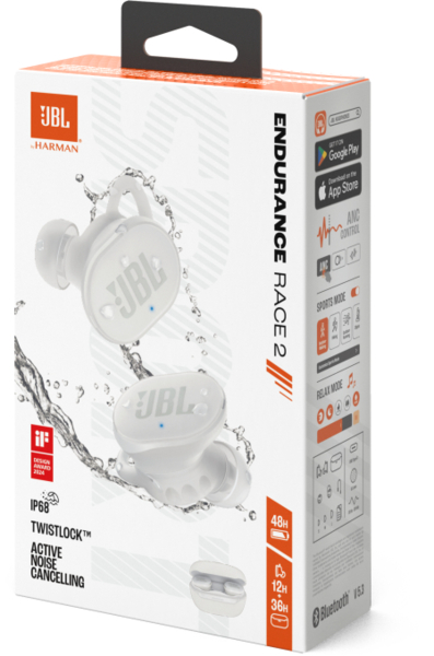 Ергономічний крильцеподібний підсилювач навушників JBL Endurance Race 2 використовує технологію Twistlock, що забезпечує кращу герметизацію та стабільність у вухах під час використання, а також комфорт протягом усього дня.