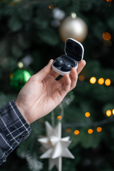 - Ваші навушники, персоналізовані для вас - Galaxy Buds FE використовують технологію персоналізованого формування променя, щоб автоматично підлаштовуватися під вашу манеру носіння для оптимального сприйняття вашого голосу. Одягніть їх, і вони визначать ваш голос, коли ви почнете говорити.