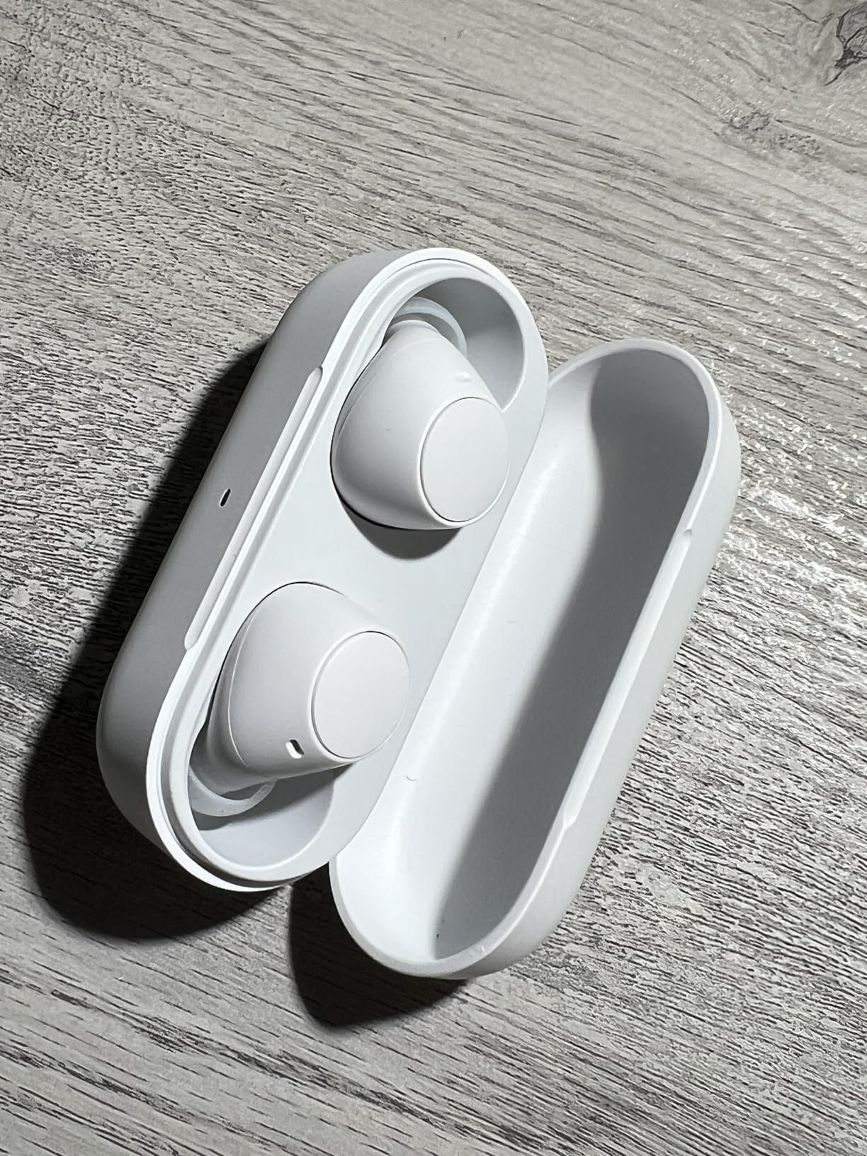 Эти больше выделяются чем в черном корпусе, не пачкаются, звук качественный с акцентом больше на вокал, под настроение менять можно если стиль музыки отличается, на басы, они не плохие, как для такой цены и размера наушников. Батарейка держится довольно долго, больше нравится как они быстро заряжаются от кейса, минут за 10 уже почти полный заряд.