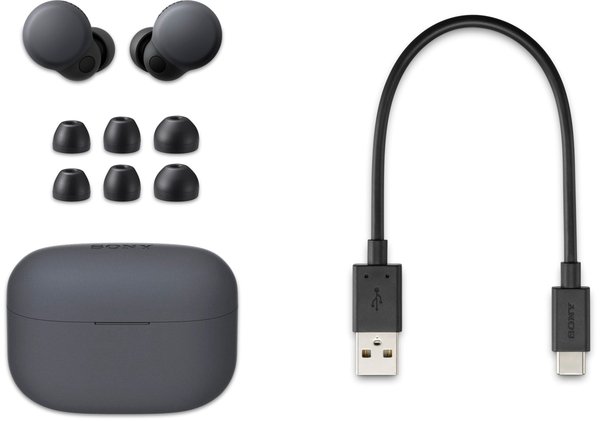 Відкривши упаковку LinkBuds S, ви виявите вкладиші 4 розмірів, які підійдуть для різних форм вух, та зарядний кабель USB-C.