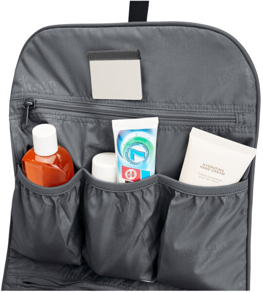 Здійснюйте щоденні гігієнічні процедури в дорозі з несесером Konya Waschsalon. Перероблена тканина armatech plus 600d забезпечує міцність конструкції. Внутрішній органайзер і численні кишені дозволяють упорядкувати всі ваші туалетні приналежності, а знімне дзеркало дає змогу оцінити результат. Гачок для вішалки забезпечить зручне розміщення.
