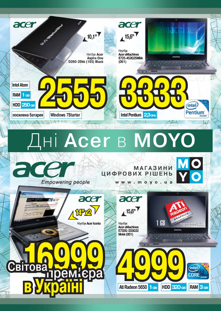 В период с 1 по 30 апреля, в сети MOYO будут представлены эксклюзивные цены, выгодные предложения и специальные условия на покупку цифровой и IT-техники торговой марки Acer.