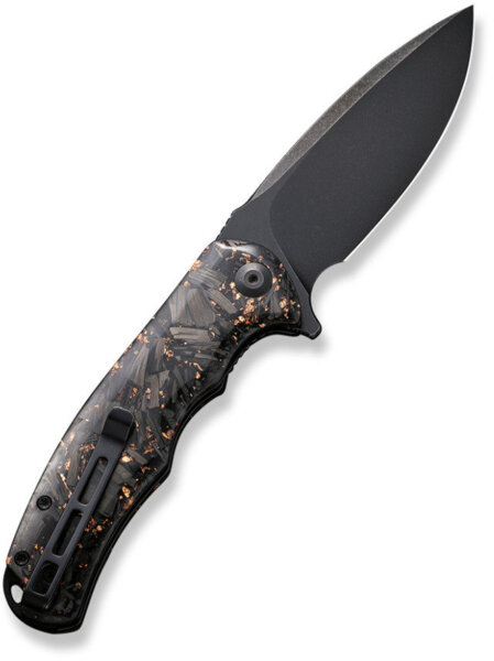 Руківʼя з епоксидної смоли. Накладки виготовлені з прозорої смоли із вкрапленнями вуглецевого волокна та мідної крихти. Такий матеріал не тільки оригінальний візуально, але й забезпечує міцність та стійкість до механічних пошкоджень. Ергономічна форма з виїмками для пальців покращує хват.