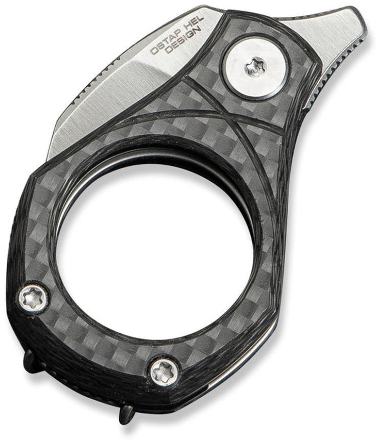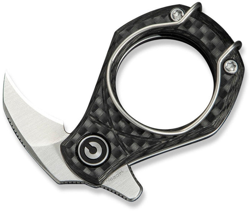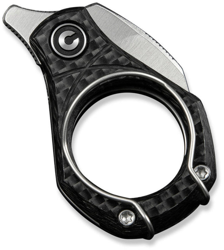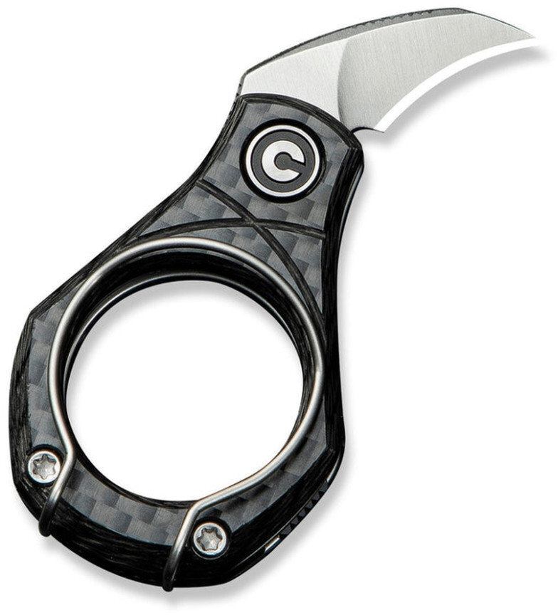 Civivi Pyrus — це компактний EDC ніж, розроблений для простих задач із різання. Клинок зі сталі Sandvik 14c28n відкривається натисканням на плавець та фіксується замком Slip Joint. Руківʼя у формі кільця доповнене накладками з G10. Кишенькова кліпса також виконує функцію кільця для носіння як брелок або затискача для грошей. Дизайн ножа розроблений польським дизайнером Остапом Хелем.