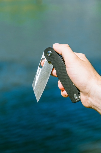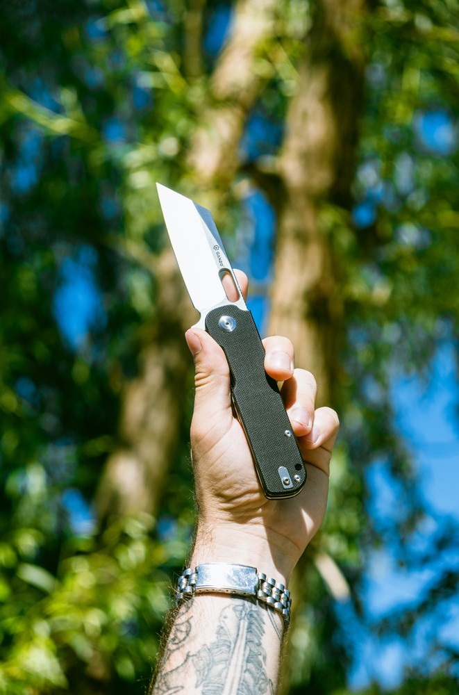 Головна перевага ножа Ganzo G770 — універсальність. Його клинок зі сталі D2 має профіль Wharncliffe з довгою різальною кромкою та тонким кінчиком, що є ідеальним і для рівного різання, та для точних надрізів. За фіксацію клинка відповідає механізм Liner Lock, а плашки G10 на руківʼї роблять утримання надійним незалежно від стилю хвата.