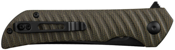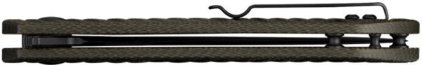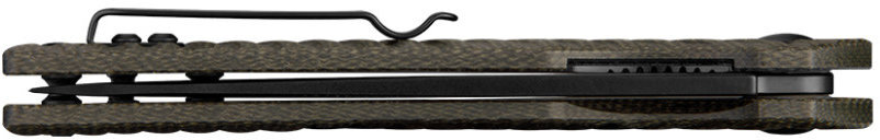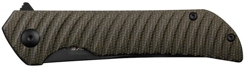 Конструкція відкривається натисканням на плавець фліпера, після чого клинок фіксується за допомогою запірної пластини механізму Liner lock. На руківʼї закріплені дві плашки з мікарти, яка протистоїть пошкодженням при механічному впливі, не тріскається у разі різкої зміни температури та не вбирає неприємні запахи. Рельєфна поверхня руківʼя робить утримання міцнішим і зручнішим, навіть якщо ви носите щільні рукавички.