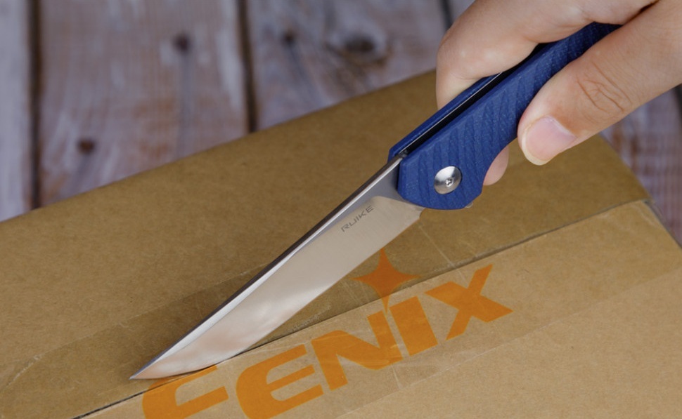 Складаний ніж Ruike P122 оснащений подовженим клинком Drop Point, створеним для здійснення акуратних надрізів. Водночас модель не позбавлена зручності роботи на укол, чому сприяє тонке вістря, тому клинок можна сміливо використовувати у вирішенні більшості завдань вдома, в гаражі або на природі та бути впевненим у якісному результаті.