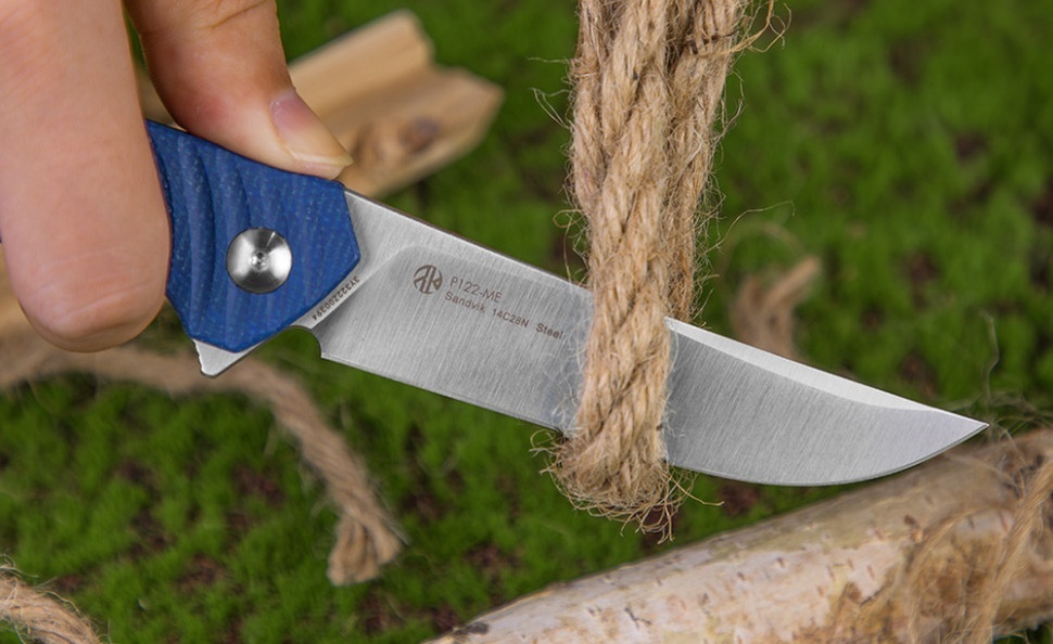 Лезо виготовлене з нержавіючої сталі Sandvik 14C28N виробництва Швеції. Сплав характеризується міцністю, що зводить до мінімуму ризик появи пошкоджень на кромці під час високого навантаження. До того ж твердість на рівні 57-59 HRC у поєднанні з тривалим утриманням гостроти дозволяє забути про часте гостріння леза.