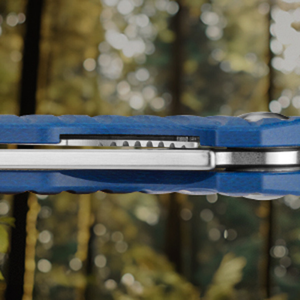 Конструкція відкривається натисканням на плавець фліпера, після чого клинок фіксується за допомогою запірної пластини механізму Liner lock. На руківʼї закріплені дві плашки з мікарти, яка протистоїть пошкодженням при механічному впливі, не тріскається у разі різкої зміни температури та не вбирає неприємні запахи. Рельєфна поверхня руківʼя робить утримання міцнішим і зручнішим, навіть якщо ви носите щільні рукавички.