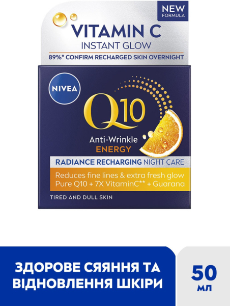 Нічний крем Nivea Q10 Energy відновлення сяйва кульковий 50 мл