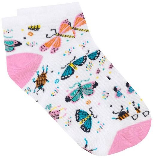 - Шкарпетки для дівчаток Duna 23-26 1 пара біло-рожеві з принтом Комахи