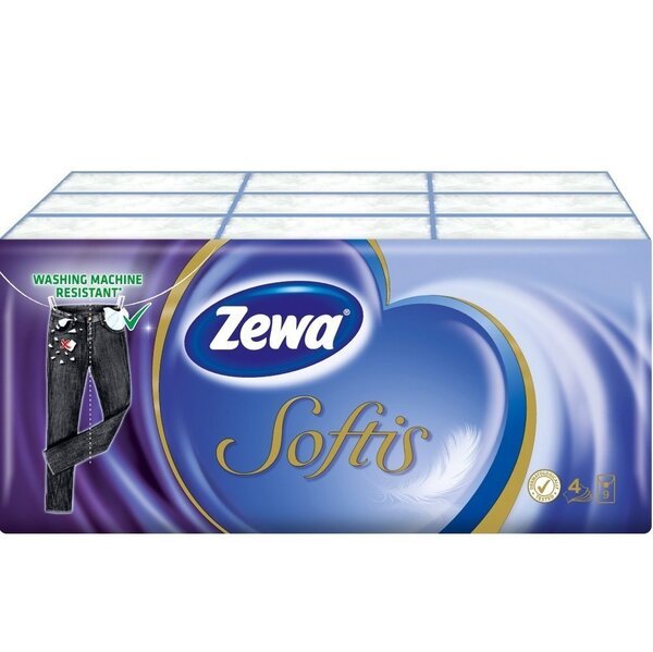 Zewa Softis Pocket – чотиришарові неароматизовані хустки преміум-класу ідеально підходять для щоденного використання. Носій повинен завжди був чистим. Оптимальним рішенням є одноразові паперові хустки. Шкарпетки від ZEWA – це делікатний засіб догляду, який не займає багато місця. Паперові хустки приємно використати. Їхня м'якість, свіжість і чистота дарують вам почуття захищеності. Паперові носовички зайняли одне з найважливіших місць серед засобів гігієни, практично витіснивши текстильні вироби. Ця на перший погляд непомітна дрібниця робить наше життя набагато зручнішим. Одна з головних переваг паперових хусток у тому, що при використанні вони не залишають частинок тканини на шкірі, тим самим запобігаючи її почервонінню та подразненню. Матеріал хусток не рветься при використання і не залишає мікроскопічні частинки на вашій шкірі. Ідеально м'які, міцні хустки чудово вбирають вологу та не прилипають до рук. У хусток простий, простий дизайн, вони зручні для частого використання. При нанесенні макіяжу, у подорожі, при застуді, у найнесподіваніших ситуаціях паперові хустки Softis від Zewa просто незамінні.