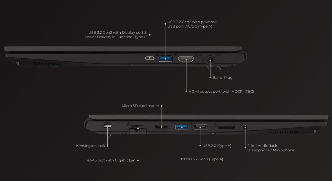 Наявність численних інтерфейсів, включно з RJ45, дає змогу підключати до ноутбука різноманітні периферійні пристрої, як-от зовнішні монітори, проєктори, принтери тощо.