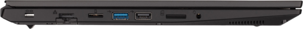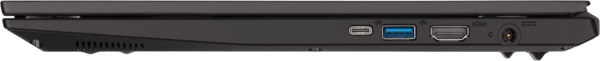 Заряджати ноутбук можна як комплектним блоком живлення з круглим штекером, так і з допомогою стороннього блока живлення Power Delivery через USB Type-C. Цей порт ще використовується для передачі даних на швидкості до 10 Гбіт/с і підключення зовнішнього монітора через перехідник на Display Port. Ще один монітор можна підключити через порт HDMI. Також присутні три повнорозмірні порти USB Type-A і кардридер. Через USB Type-A можна заряджати інші гаджети, навіть коли ноутбук вимкнений.