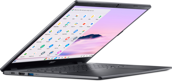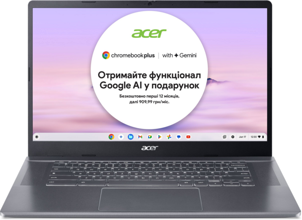 Ноутбук Chromebook Plus приємно здивує користувачів своєю продуктивністю. Він вирізняється вдвічі більшою швидкодією, обсягом пам’яті та ємністю накопичувача. Крім того, пристрій підтримує функціональні засоби від компаній Adobe і Google на основі ШІ, що відкривають перед користувачами безліч нових можливостей.