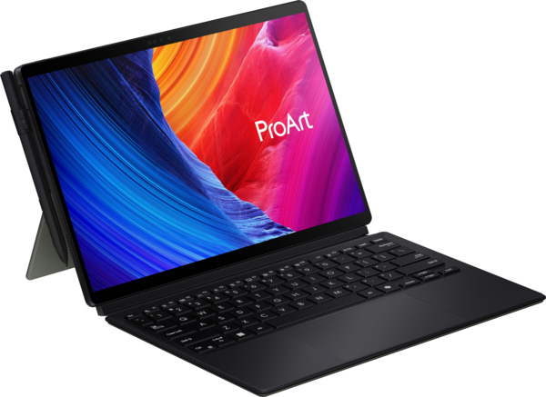 ProArt PZ13 - ноутбук-трансформер зі знімною клавіатурою, що відповідає класу захисту IP52 і пройшов випробування надійності згідно із суворими військовими стандартами. Він ідеально підходить для творчої роботи на відкритому повітрі. Сенсорний OLED-дисплей ноутбука дарує незрівнянні враження від перегляду, а процесор Snapdragon X Plus із NPU продуктивністю 45 TOPS дасть змогу користувачам розкрити свої творчі здібності з використанням технологій штучного інтелекту, не обмежуючи при цьому автономність пристрою. Для більшої зручності пристрій комплектується універсальними аксесуарами, зокрема знімною клавіатурою та стилусом ASUS Pen 2.0. Повний набір інтерфейсів, включно зі слотом для SD-карт з адаптером microSD, спрощує підключення периферії та перенесення фотографій. Цей тонкий і легкий ноутбук поєднує в собі найсучасніші технології з чудовою ергономічністю, відкриваючи творчі можливості для кожного користувача, де б він не був.