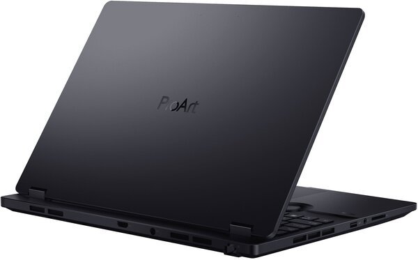 ProArt Studiobook 16 OLED має шарніри нової ступінчастої конструкції, що покращують розсіювання тепла, а також вузьку з усіх боків рамку NanoEdge, яка збільшує площу дисплея. Ноутбук розкривається на 180°, щоб зручно ділитися ідеями та проєктами з замовниками чи колегами. На матову поверхню кольору Mineral Black нанесено технологічне олеофобне нанопокриття, що захищає ноутбук ProArt Studiobook 16 OLED від плям та слідів. Це покриття не лише вирізняється міцністю, а й приємне, шовковисте на дотик.