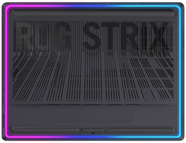 Ноутбук 2025 ROG Strix G16 оснащений RGB-підсвічуванням, що обрамляє усю нижню панель корпусу, створюючи яскраве світіння на столі. Це підсвічування може синхронізуватися з іншими периферійними пристроями ROG.