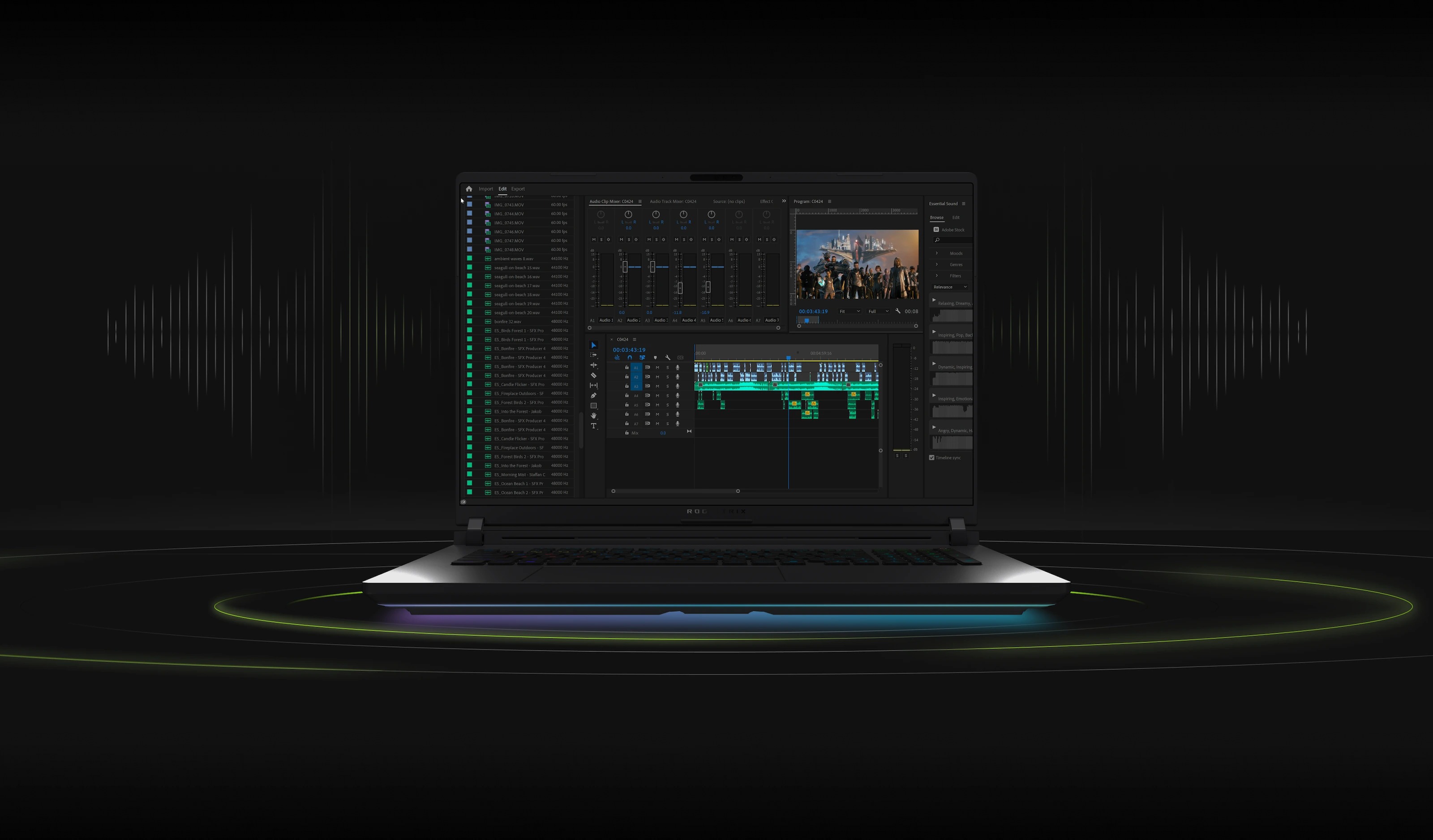 Ноутбук 2025 ROG Strix G16 оснащений RGB-підсвічуванням, що обрамляє усю нижню панель корпусу, створюючи яскраве світіння на столі. Це підсвічування може синхронізуватися з іншими периферійними пристроями ROG.