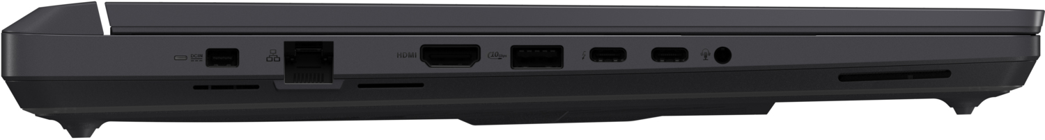 Наявність різноманітних портів дозволяє підключити до ноутбука мишу, гарнітуру, зовнішній монітор тощо, тому ROG Strix G16 отримав максимально широкий набір таких інтерфейсних портів. На його правій грані розташовано два порти USB Type-A, а на лівій - більшість інших роз'ємів: аудіороз'єм, порт Thunderbolt 4, один порт USB Type-A, один порт USB Type-C, HDMI 2.1, порт Ethernet 1 Гбіт/с і порт живлення. Якщо уявити собі ідеальну бойову станцію, то ROG Strix G16 - це її втілення в реальність.
