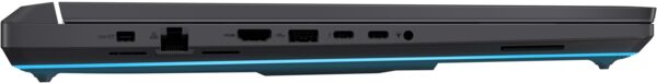 Наявність різноманітних портів дозволяє підключити до ноутбука мишу, гарнітуру, зовнішній монітор тощо, тому ROG Strix G18 отримав максимально широкий набір таких інтерфейсних портів. На його правій грані розташовано два порти USB-A, а на лівій - більшість інших роз'ємів: аудіороз'єм, два порти Thunderbolt 5, один порт USB-A, HDMI 2.1, порт Ethernet 2,5 Гбіт/с і порт живлення. Якщо уявити собі ідеальну бойову станцію, то ROG Strix G18 - це її втілення в реальність.