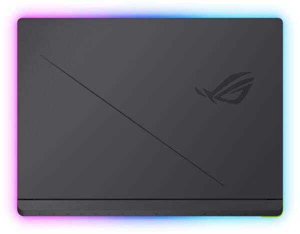 Ноутбук ROG Strix G18 оснащений RGB-підсвічуванням, що обрамляє усю нижню панель корпусу, створюючи яскраве світіння на столі. Це підсвічування може синхронізуватися з іншими периферійними пристроями ROG.