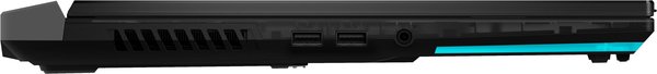 Для підключення периферії ноутбук пропонує один порт USB 3.2 Type-C (з підтримкою режимів DisplayPort 1.4, і USB Power Delivery), один порт Thunderbolt 4 і два порти USB 3.2 Gen1 Type- A, а для виведення зображення формату 4K (60 Гц) на зовнішній монітор або телевізор є інтерфейс HDMI 2.0b. Щоб кабелі не плуталися під руками, інтерфейсні роз'єми розміщені у задній частині корпусу.