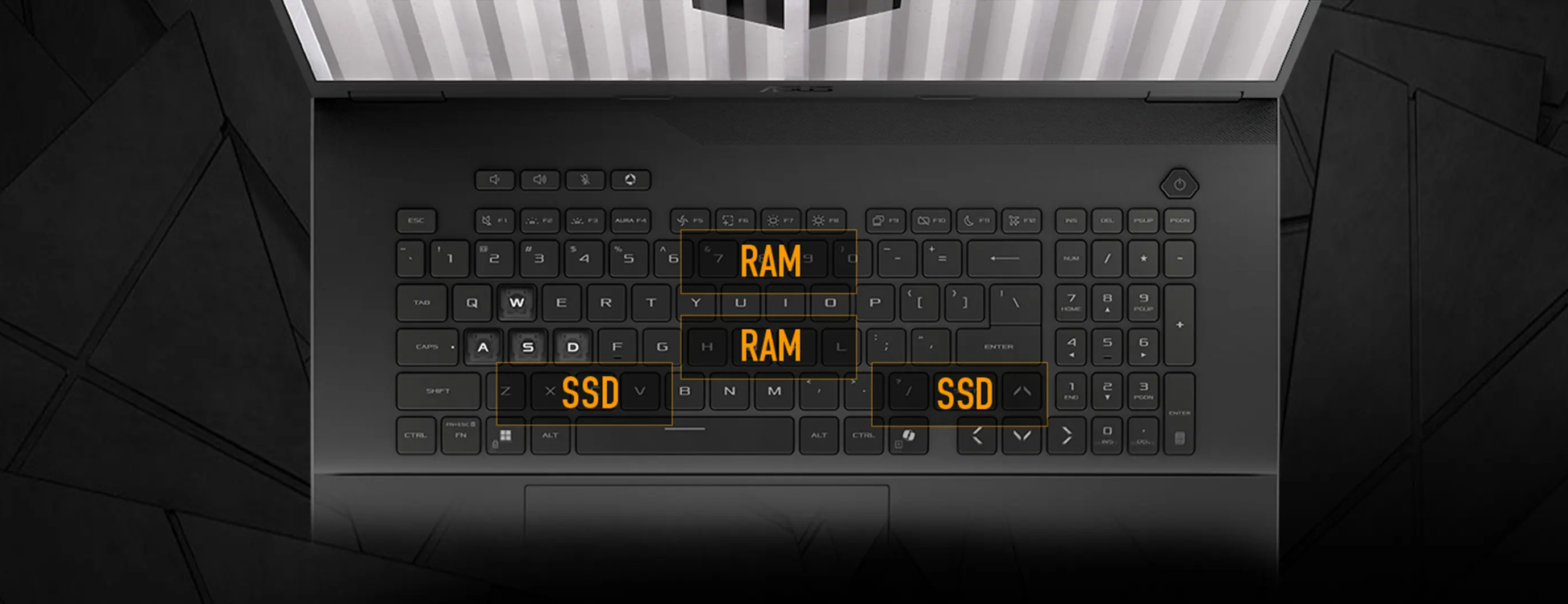 Озбройтеся клавіатурою у стилі клавіатури настільного комп'ютера, створеною спеціально для ігор. RGB-підсвічування можна оформити у власному унікальному стилі. Технологія Overstroke забезпечує прискорене спрацьовування клавіш для швидшої реакції та кращого керування в іграх. Відповідно до вимог серії TUF, клавіатура також може похвалитися особливою довговічністю - її ресурс становить понад 20 мільйонів натискань. Тачпад має частоту опитування 240 Гц, що дає системі більше інформації про скролінг і зменшує кількість випадкових натискань.