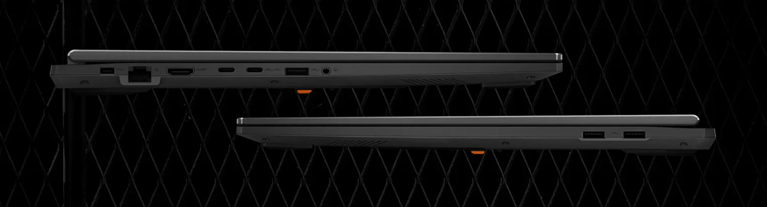 Ноутбук TUF Gaming A18 пропонує велику кількість портів для підключення периферії. Окремий порт HDMI 2.1 доповнений двома портами USB Type-C з підтримкою інтерфейсу DisplayPort, а також можливості заряджання. Зі швидким і надійним бездротовим модулем Wi-Fi 6E ви зможете ефективно працювати з будь-якого місця або ж під'єднатися напряму за допомогою вбудованого порту Gigabit Ethernet. Додаткова стабільність сигналу на великих відстанях досягається в A18 за допомогою технології TAS, що дає більше свободи для роботи й розваг.