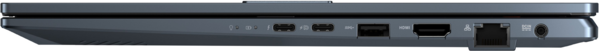 Vivobook Pro 15 OLED допоможе вам легко та швидко реалізувати свої творчі ідеї. Він пропонує швидкісний порт Thunderbolt 4 (USB-C), який підтримує швидке заряджання та передачу даних на швидкості до 40 Гбіт/с, порт USB 3.2 Gen 2 Type-C, порт HDMI 2.1, який підтримує підключення зовнішнього монітора з роздільною здатністю до 4K, порт LAN і пристрій для читання SD-карт.