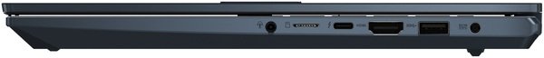 Vivobook Pro 15 OLED пропонує користувачеві сучасний комплект інтерфейсів, що включає порти Thunderbolt 4 (роз'єм USB-C, прискорена підзарядка, до 40 Гбіт/с), microSD, HDMI 2.1 (з підтримкою режиму 4K/120 Гц), USB 3.2 Gen1 Type-A та USB 2.0. Це буде достатньо, щоб підключити будь-яку периферію для передачі або відображення контенту.