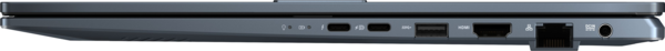 Vivobook Pro 16 допоможе вам легко та швидко реалізувати свої творчі ідеї. Він пропонує швидкісний порт Thunderbolt 4 (USB-C), який підтримує швидке заряджання та передачу даних на швидкості до 40 Гбіт/с, порт USB 3.2 Gen 2 Type-C, порт HDMI 2.1, який підтримує підключення зовнішнього монітора з роздільною здатністю до 4K, порт LAN і пристрій для читання MicroSD-карт.