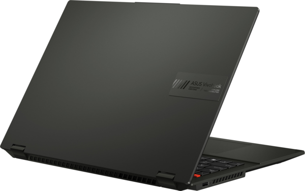 Vivobook S 16 Flip вирізняється унікальною рельєфною вставкою з логотипом, а також смужковими акцентами на клавіші Enter і яскраво-помаранчевою клавішею ESC. Крім того, він має новий дизайн портів у вигляді блоків. Щодо кольорів, то на вибір пропонується чарівний чорний (Midnight Black) і вишуканий сріблястий (Cool Silver) варіанти. Корпус Vivobook S 16 Flip досить тонкий, щоб поміститися в будь-який рюкзак і легкий, щоб його можна було без зусиль переносити однією рукою.