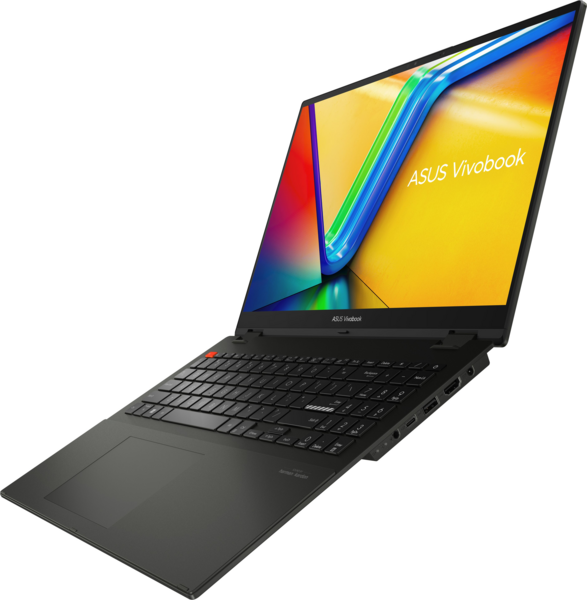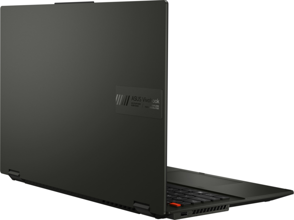 Vivobook S 16 Flip вирізняється унікальною рельєфною вставкою з логотипом, а також смужковими акцентами на клавіші Enter і яскраво-помаранчевою клавішею ESC. Крім того, він має новий дизайн портів у вигляді блоків. Щодо кольорів, то на вибір пропонується чарівний чорний (Midnight Black) і вишуканий сріблястий (Cool Silver) варіанти. Корпус Vivobook S 16 Flip досить тонкий, щоб поміститися в будь-який рюкзак і легкий, щоб його можна було без зусиль переносити однією рукою.