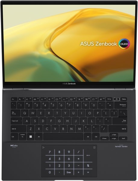 Аудіосистема ноутбука з інтелектуальним підсилювачем і підтримкою технології Dolby Atmos створює неймовірне звучання, а його конструкція містить багато продуманих особливостей – зокрема, зручний зчитувач відбитків пальців на кнопці живлення для входу в систему одним дотиком, нову клавіатуру та тачпад ASUS ErgoSense та панель ASUS NumberPad. 2.0 для зручного введення чисел. Кришку ноутбука прикрашає новий логотип із монограмою, а корпус має нефритово-чорне покриття. Zenbook 14 OLED – це новий еталон потужності, елегантності та портативної досконалості.