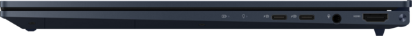 Ноутбук Zenbook 15 OLED укомплектований усіма інтерфейсними портами, потрібними для легкого під’єднання ваших пристроїв та периферійного обладнання. Найсучасніші швидкісні порти USB-C підтримують швидке заряджання, дають змогу під’єднувати зовнішні дисплеї 4K UHD та передавати дані зі швидкістю до 40 Гбіт/с, а крім того, ноутбук оснащений виходом HDMI та портом USB 3.2 Gen 2 Type-A. Для зв’язку та під’єднання звукового обладнання передбачено зручний комбінований аудіороз'єм.