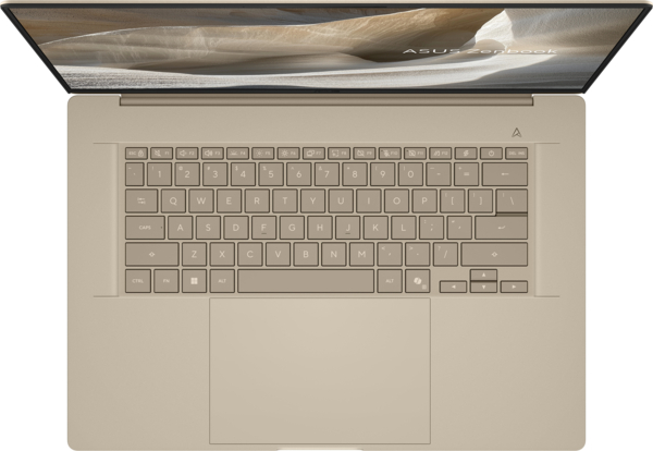 Zenbook A16 – це 16-дюймовий ноутбук, який важить стільки ж, скільки типовий 14-дюймовий. Такої легкості вдалося досягти завдяки використанню ексклюзивного матеріалу ASUS Ceraluminum для кришки, рамки та нижньої частини корпусу.