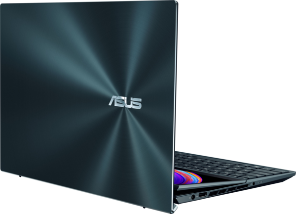 Корпус ноутбука ZenBook Pro Duo 15 OLED виготовлений із високотехнологічного й легкого магній-алюмінієвого сплаву з обробкою небесно-блакитного кольору. Його дизайн виконаний у футуристичному стилі. На кришці дисплея привертає погляд асиметрична варіація на тему вже добре знайомого користувачам орнаменту з найтонших концентричних кіл, характерного для всіх пристроїв серії Zenbook. Такий елегантний дизайнерський елемент надає оформленню ноутбука абсолютну унікальність - він не схожий на жоден інший. Краї корпусу мають широкі дзеркальні грані з «діамантовим» окантуванням, в яких відбивається зовнішній світ.