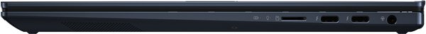 Ноутбук Zenbook S 13 Flip OLED укомплектований усіма інтерфейсними портами, потрібними для легкого під’єднання ваших пристроїв і периферійного обладнання. Особливо варто відзначити наявність інтерфейсу Thunderbolt 4 USB-C.Він підтримує прискорене заряджання, виведення відеосигналу на зовнішні монітори формату 4K/UHD та передачу даних на швидкості до 40 Гбіт/с. Пристрій також оснащено кард-рідером microSD та може комплектуватися зручним кабелем-перехідником USB-C на Type-A. Для зв’язку та під’єднання звукового обладнання передбачено зручний комбінований аудіороз'єм.