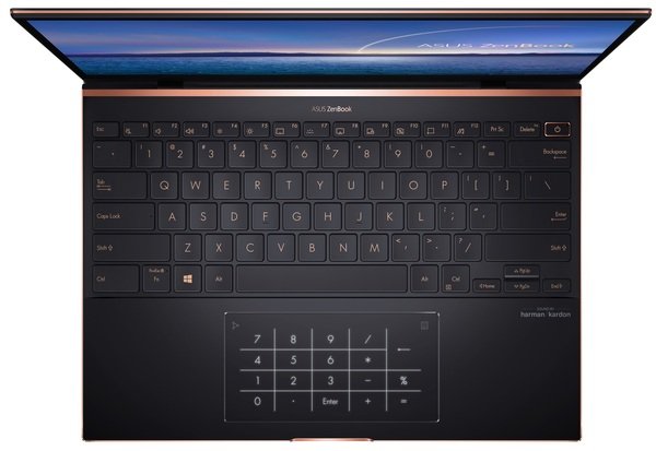 ZenBook S має ергономічну клавіатуру, що займає всю ширину Корпусу. Вона доповнена оригінальним Тачпадом NUMBERPAD 2.0, який може відігравати роль повнорозмірного цифрового блоку клавіш для введення Чисел. Вбудована інфрачервона камера підтримує прискорену автентифікацію розпізнавання обличчя для входу в Windows без пароля (функція Windows Hello) і чудово працює навіть в умовах поганого освітлення.