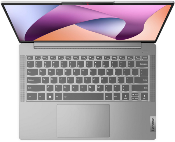 Такі деталі, як зручна і тактильна клавіатура з правильним натисканням клавіш, велика кількість портів і чіткий 14-дюймовий екран, роблять використання IdeaPad Slim 5 справжнім задоволенням. Він оснащений інфрачервоною FHD-камерою з сенсором ToF для чудової просторової роздільної здатності, а також шторкою для забезпечення конфіденційності. Крім того, подвійний мікрофон усуває фонові шуми, що можуть заважати користувачеві. Усе це створює ідеальний ноутбук — достатньо портативний, щоб носити його з собою, і достатньо великий, щоб комфортно працювати з документами та презентаціями.