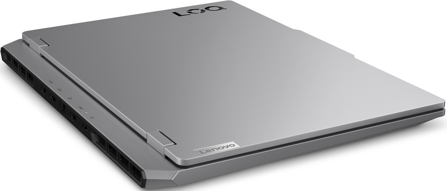 Корпус Lenovo LOQ кольору Luna Grey є гладким і міцним, виготовленим за технологіями аерокосмічної промисловості. Веб-камера 5 МП з eShutter killswitch забезпечує миттєву конфіденційність, а індикатор RGB «O» швидко показує ваш тепловий режим. Залишайтеся стильними та готовими до роботи з Lenovo LOQ.