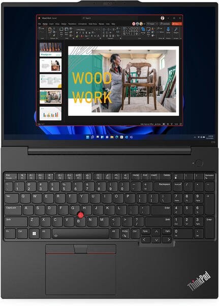 Оціни сучасний професійний дизайн ноутбука ThinkPad E16 (16, AMD). Його більша та ергономічніша клавіатура оснащена надійними клавішами з покращеним ходом, а також цифровим блоком. Відстань між клавішами збільшена, щоб запобігти випадковому введенню. Гладка сенсорна панель розміром 115 мм x 68 мм покращує навігацію на екрані. А приголомшливий 16-дюймовий дисплей стандарту WQXGA (2560 x 1600) (у максимальній комплектації) з 100-відсотковим охопленням колірного простору sRGB, опційним сенсорним управлінням, сертифікований за стандартом Low Blue Light на основі апаратних рішень, забезпечує виняткову якість зображення.