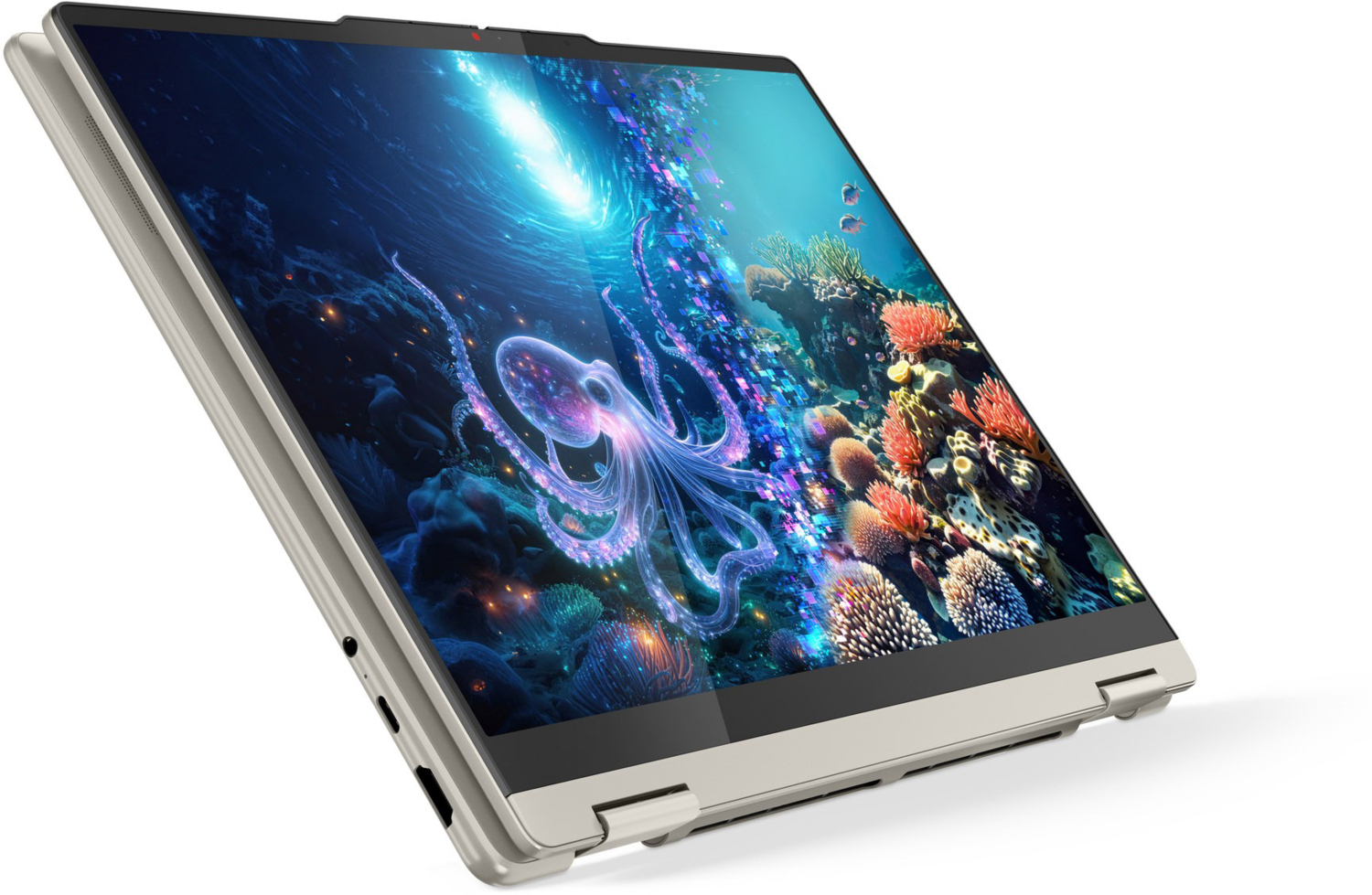 Рухайтесь вільно з Yoga 7 2-in-1. Його конструкція із шарніром, що обертається на 360°, дозволяє легко перемикатися між режимами ноутбука та планшета, щоб ви могли малювати, редагувати чи презентувати без жодних перешкод. Сенсорний екран і стилус Yoga з підтримкою розпізнавання нахилу і тиску роблять кожен дотик, свайп і штрих легким і точним для всіх ваших творчих ідей.